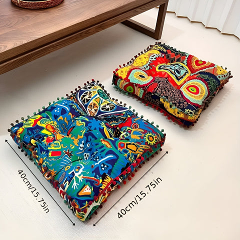 The Boho Style Square Floor Cushion blends comfort and style, featuring twill knit fabric and microfiber blend filling for plush support. Its vibrant bohemian design makes it ideal for benches, sofas, or as a decorative accent. Functional and versatile, it’s a must-have for any cozy, stylish living space.