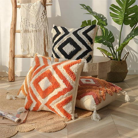 Inspired by Moroccan artistry, the Casablanca Tufted Cushion Cover combines breathable cotton with elegant tufted textures. Its neutral palette fits effortlessly into any room, bringing a cozy and refined touch.