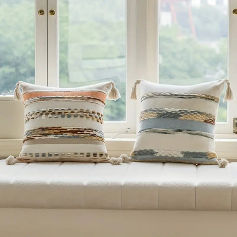 These beautiful boho stripe cushion covers are the perfect addition to elevate your living room or couch. With their eye-catching, double-sided design and stylish tassels, they bring warmth and character to any space, instantly drawing compliments from guests.